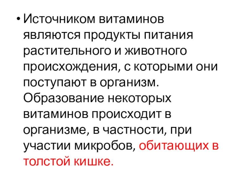 они поступают в организм. Образование некоторых витаминов происходит в организме, в частности, при участии микробов, обитающих в толстой кишке.