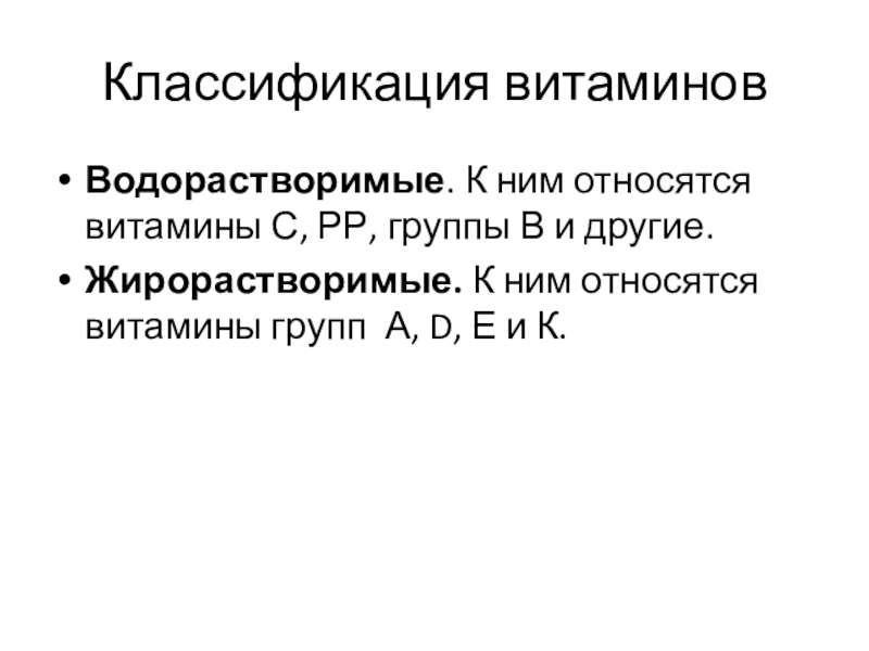 Жирорастворимые. К ним относятся витамины групп А, D, Е и К.