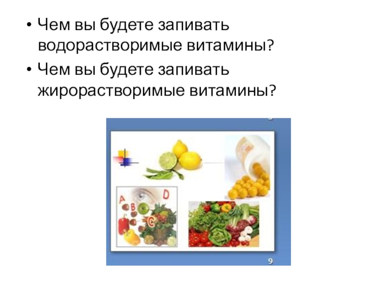 Слайд 6Чем вы будете запивать водорастворимые витамины?