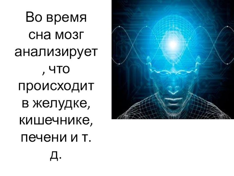 Слайд 32Во время сна мозг анализирует, что происходит в желудке, кишечнике, печени