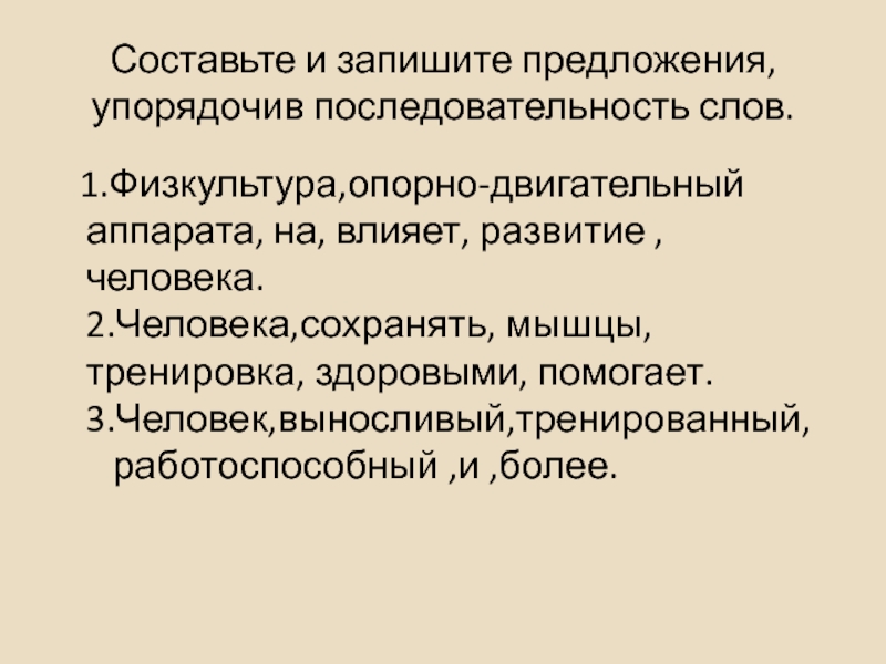 Слайд 6Составьте и запишите предложения, упорядочив последовательность слов.
