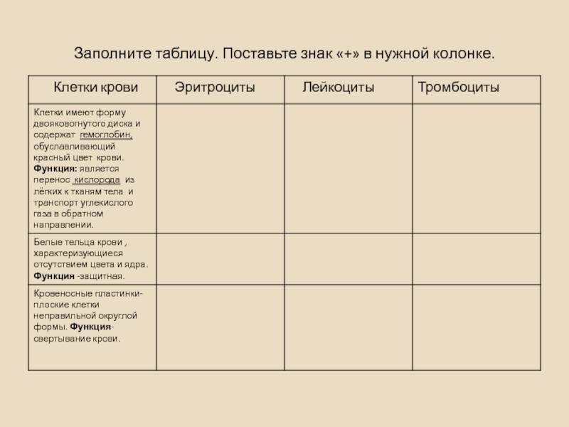 Слайд 21Заполните таблицу. Поставьте знак «+» в нужной колонке.