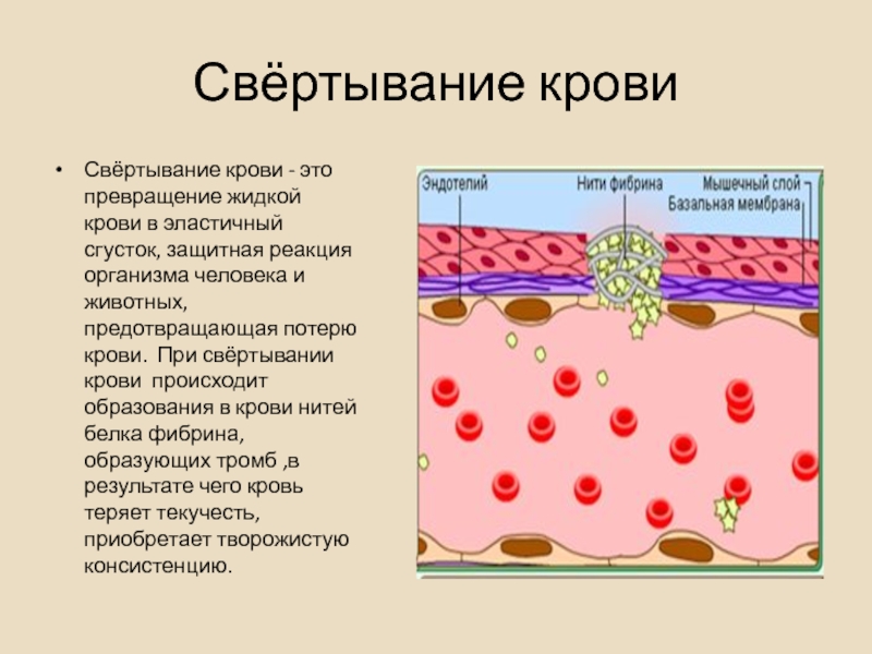 Свёртывание крови - это превращение жидкой крови в эластичный сгусток,