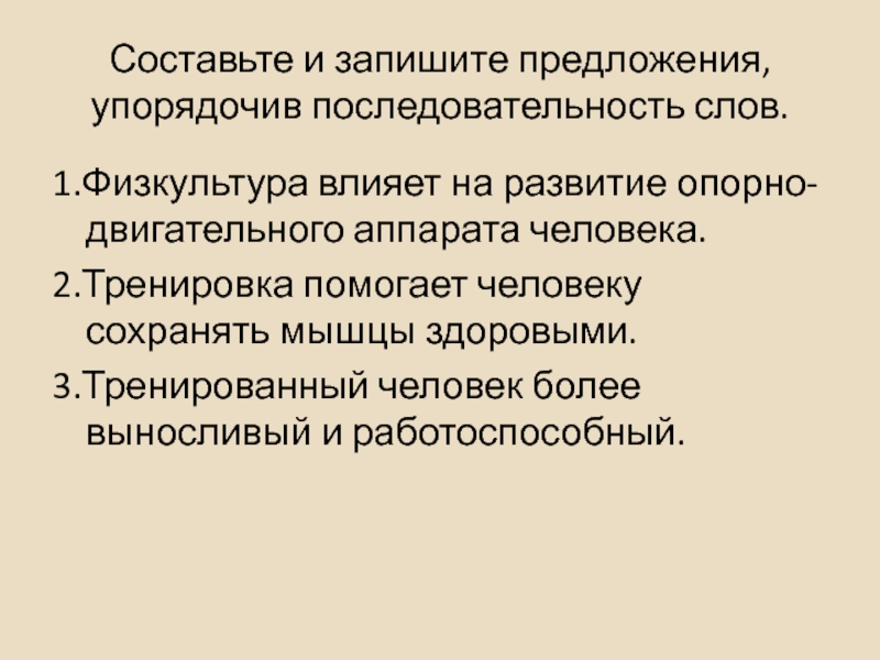 2.Человека,сохранять, мышцы, тренировка, здоровыми, помогает.