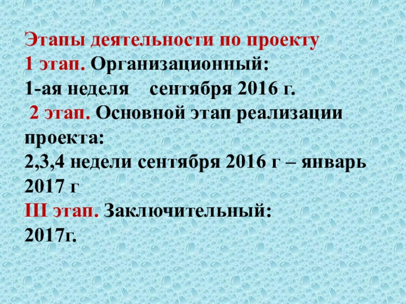 Сроки проведения исследования: сентябрь 2016 г –2017г.