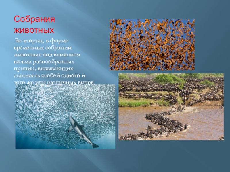 Во-вторых, в форме временных собраний животных под влиянием