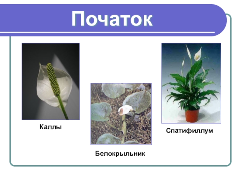 ПочатокБелокрыльникКаллыСпатифиллум
