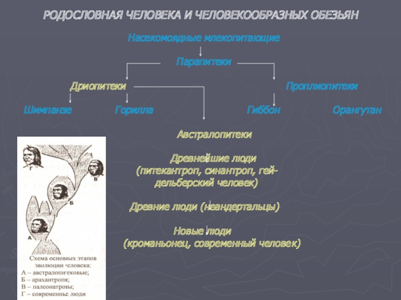РОДОСЛОВНАЯ ЧЕЛОВЕКА И ЧЕЛОВЕКООБРАЗНЫХ ОБЕЗЬЯН