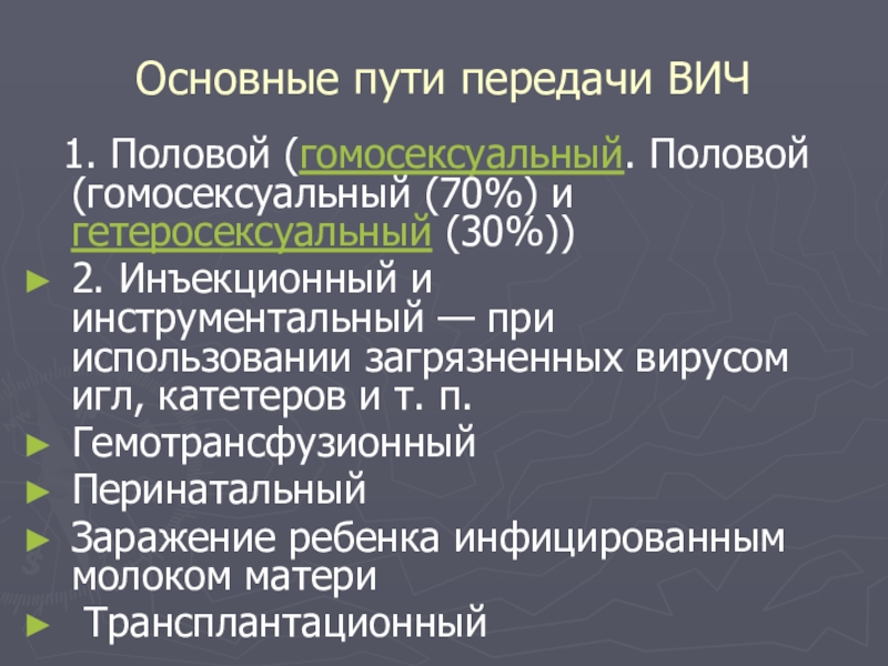 1. Половой (гомосексуальный. Половой (гомосексуальный (70%) и