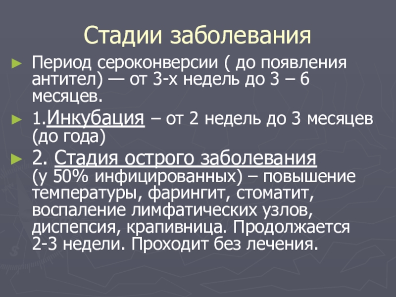Период сероконверсии ( до появления антител) — от 3-х недель