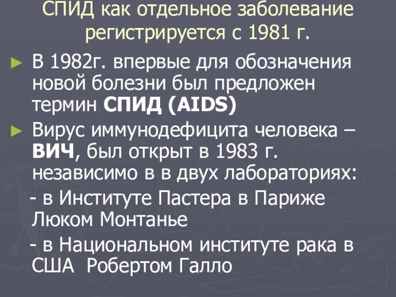 Слайд 3СПИД как отдельное заболевание регистрируется с 1981 г.