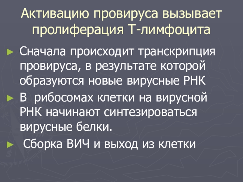 Слайд 10Активацию провируса вызывает пролиферация Т-лимфоцита