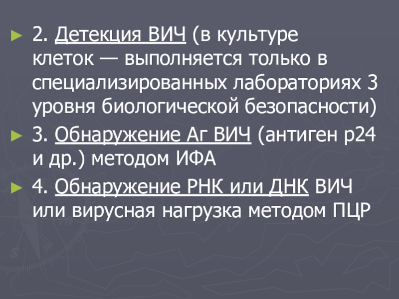 Слайд 212. Детекция ВИЧ (в культуре клеток — выполняется только в специализированных лабораториях