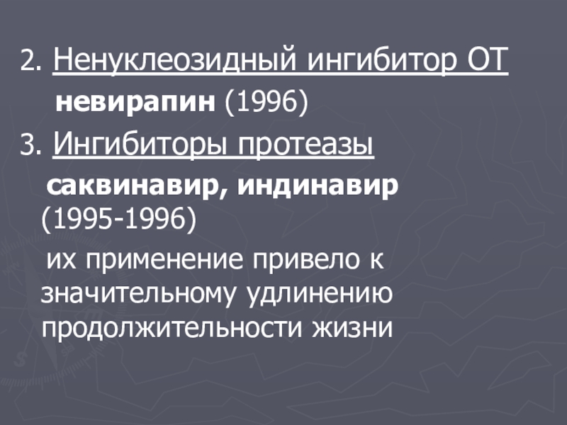 (Retrovir, ZDV, AZT) -первый антиретровирусный препарат – применяется с 1987 г.