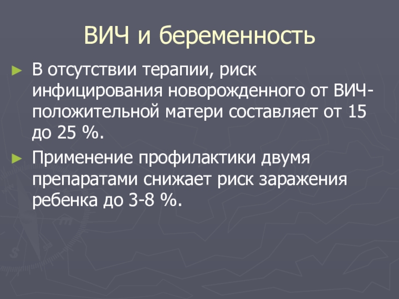 В отсутствии терапии, риск инфицирования новорожденного от ВИЧ-положительной матери