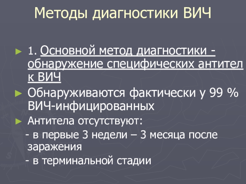 1. Основной метод диагностики -обнаружение специфических антител к ВИЧ