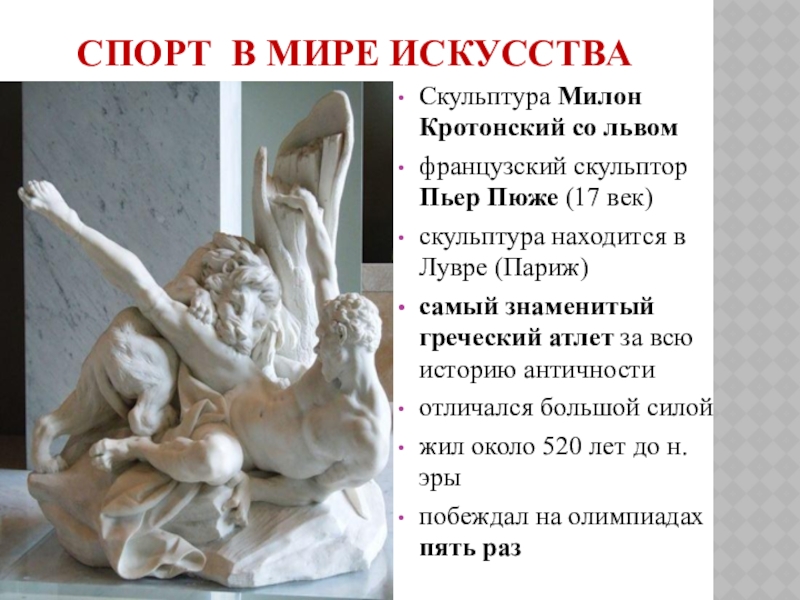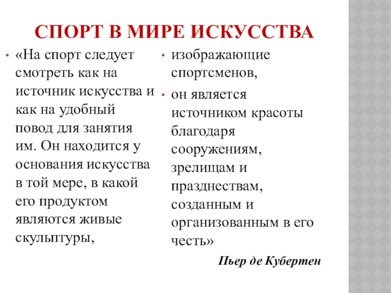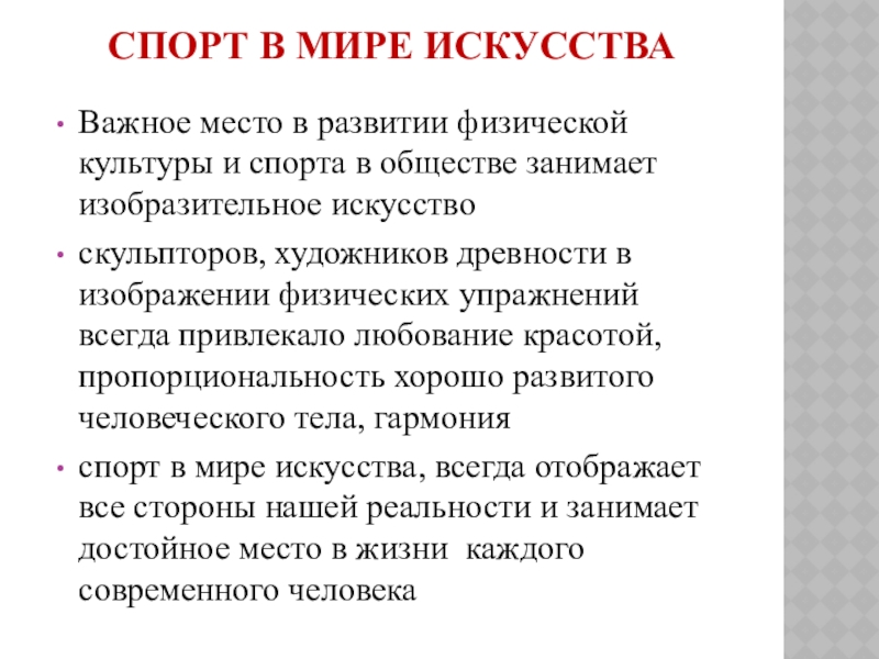 изобразительное искусство прославляет спорт, потому что он проявляет все лучшее, что есть в человеке: и то, что заложено природой, и то, что он сам в себе воспитал