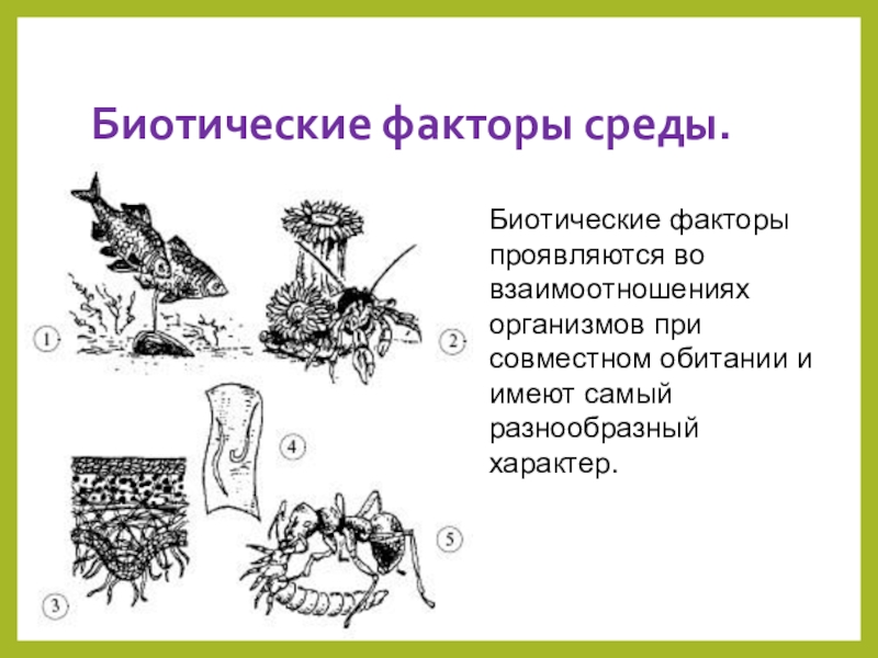 Биотические факторы проявляются во взаимоотношениях организмов при совместном обитании