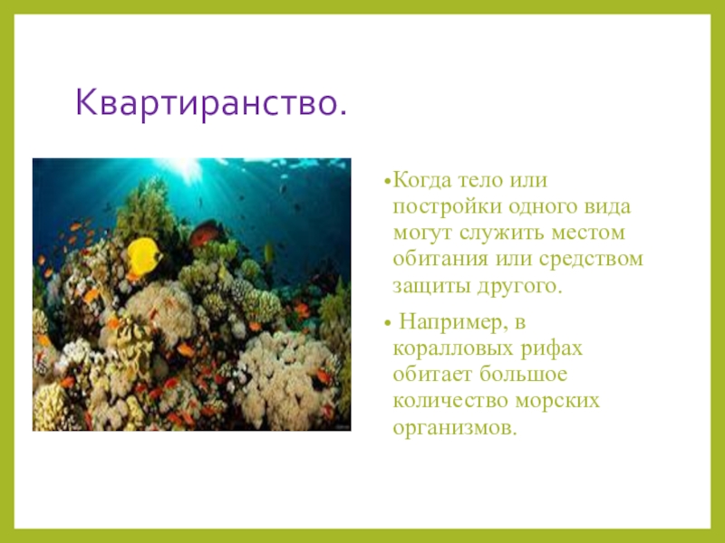 Например, в коралловых рифах обитает большое количество морских организмов.