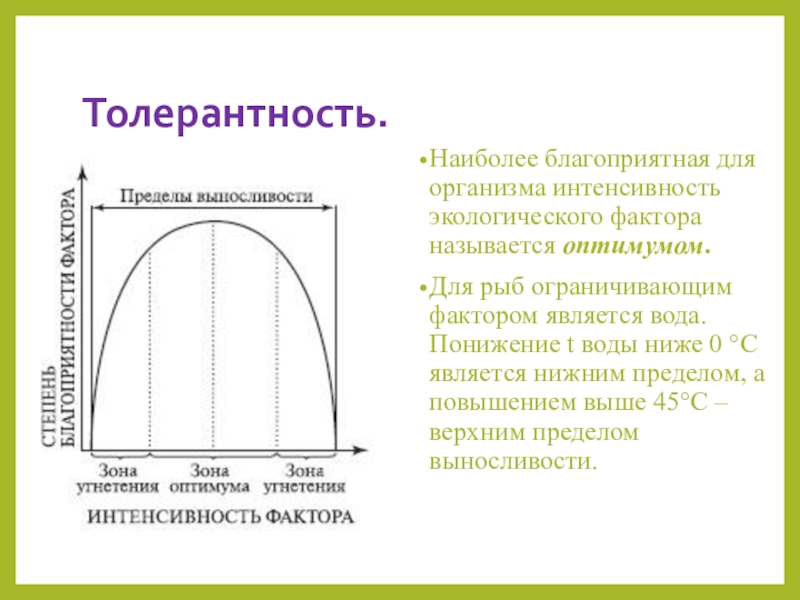 фактором является вода. Понижение t воды ниже 0 °C является нижним пределом, а повышением выше 45°C – верхним пределом выносливости.