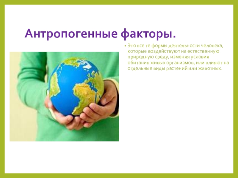 Абиотические факторы – это воздействующие на организм компоненты неживой природы.