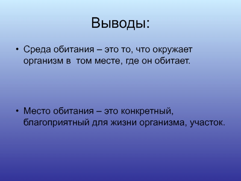 Место обитания – это конкретный, благоприятный для жизни организма, участок.