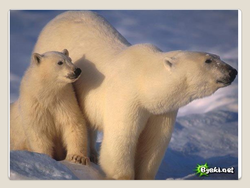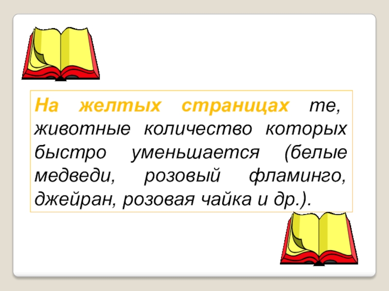 Слайд 16На желтых страницах те, животные количество которых быстро уменьшается (белые медведи,