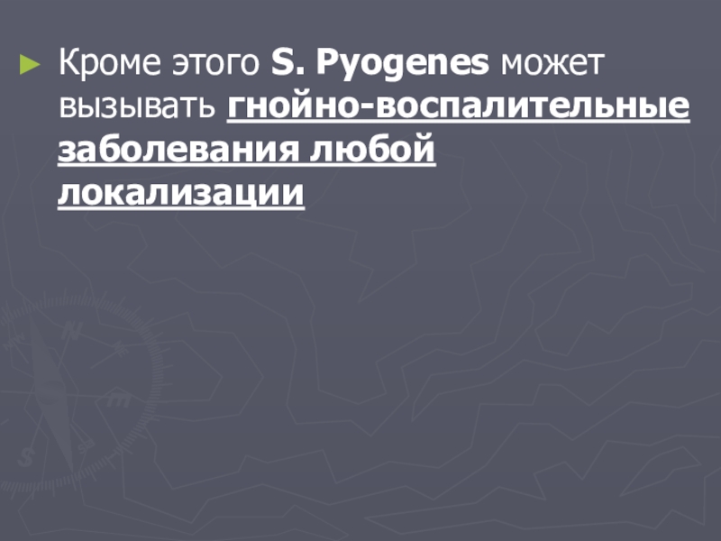Слайд 17Кроме этого S. Pyogenes может вызывать гнойно-воспалительные заболевания любой локализации