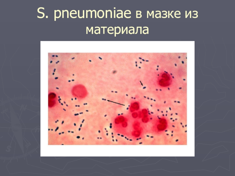 Слайд 27S. pneumoniae в мазке из материала