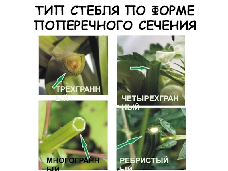 ТИП СТЕБЛЯ ПО ФОРМЕ ПОПЕРЕЧНОГО СЕЧЕНИЯТРЕХГРАННЫЙЧЕТЫРЕХГРАННЫЙМНОГОГРАННЫЙРЕБРИСТЫЙЫЙ