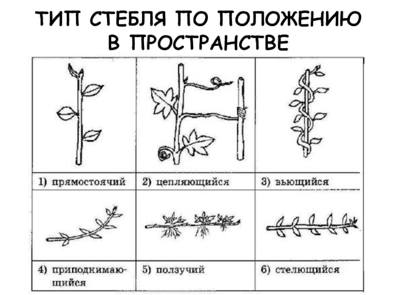Слайд 6ТИП СТЕБЛЯ ПО ПОЛОЖЕНИЮ В ПРОСТРАНСТВЕ