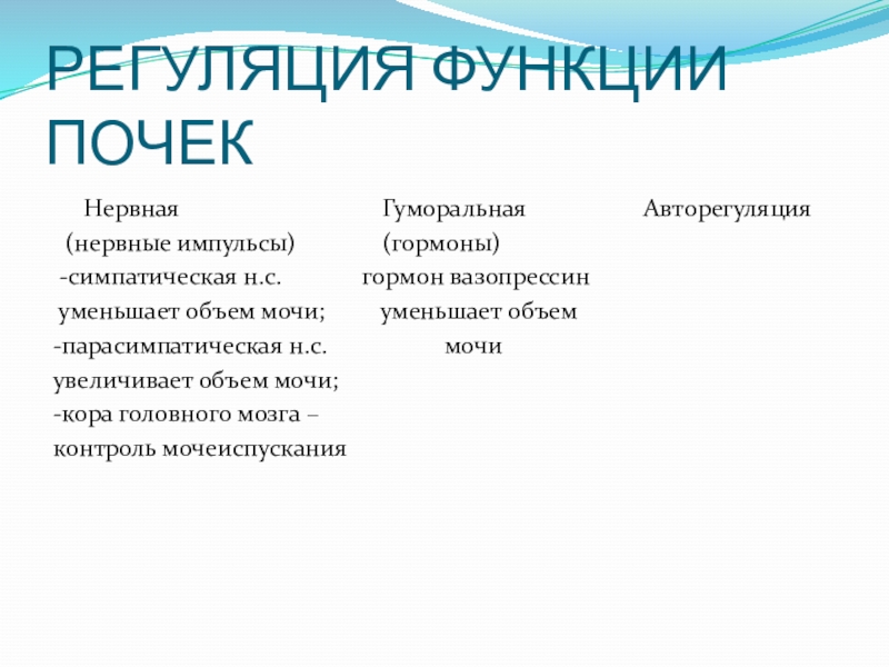 Слайд 16РЕГУЛЯЦИЯ ФУНКЦИИ ПОЧЕК