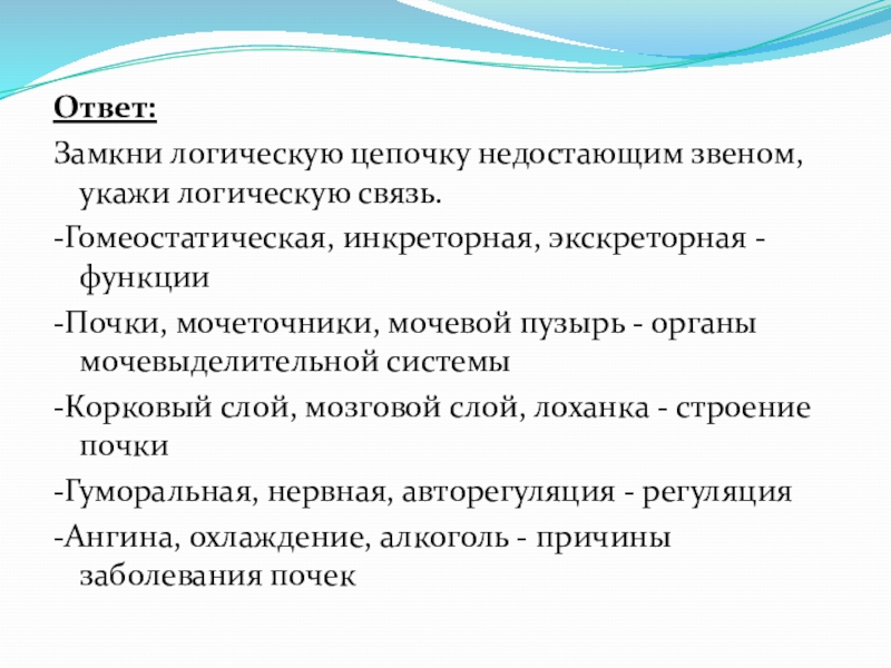 Замкни логическую цепочку недостающим звеном, укажи логическую связь.