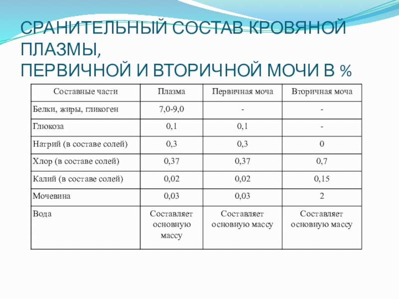 ПЕРВИЧНОЙ И ВТОРИЧНОЙ МОЧИ В %