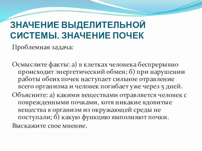 Слайд 5ЗНАЧЕНИЕ ВЫДЕЛИТЕЛЬНОЙ СИСТЕМЫ. ЗНАЧЕНИЕ ПОЧЕК