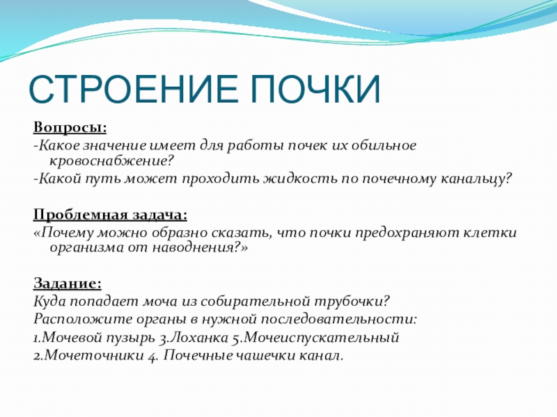 «Почему можно образно сказать, что почки предохраняют клетки организма от наводнения?»