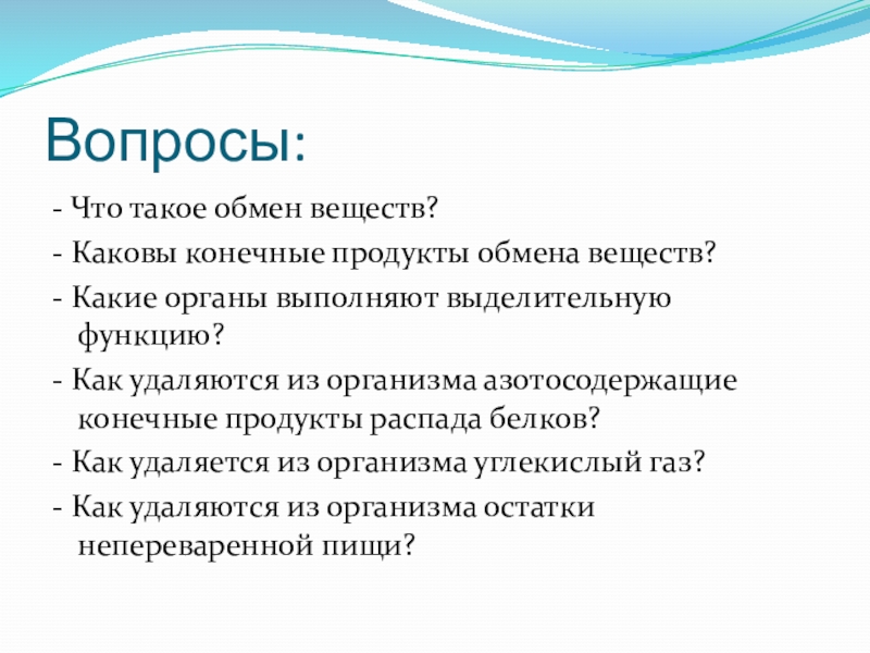 - раскроем значение выделения из организма конечных продуктов обмена веществ.