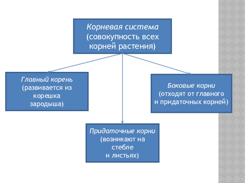 Корень покрыт корневыми волосками, через которые он поглощает воду и минеральные вещества.
