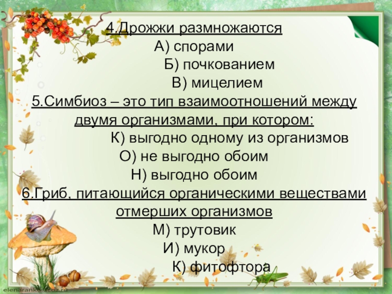 4.Среди грибов встречаются как одноклеточные, так и многоклеточные