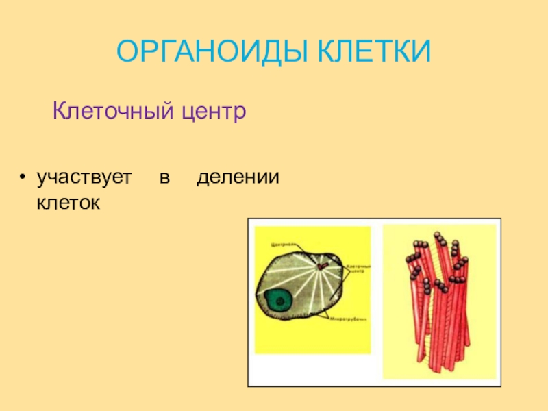 ОРГАНОИДЫ КЛЕТКИКлеточный центручаствует в делении клеток