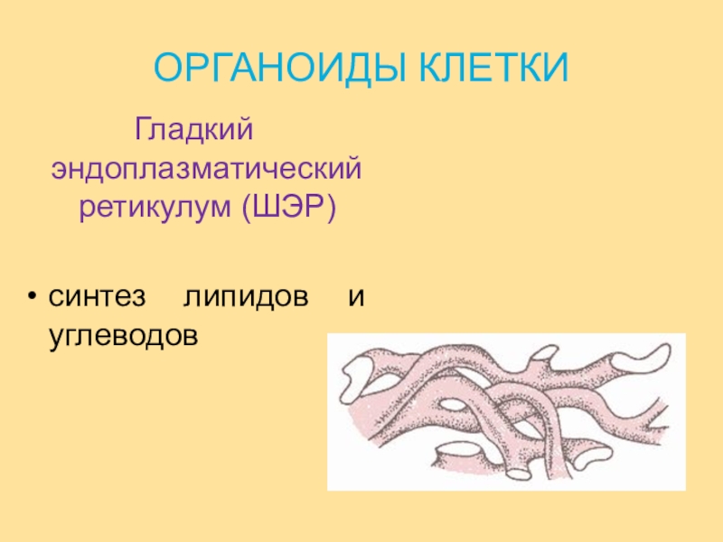 ОРГАНОИДЫ КЛЕТКИГладкий эндоплазматический ретикулум (ШЭР)синтез липидов и углеводов