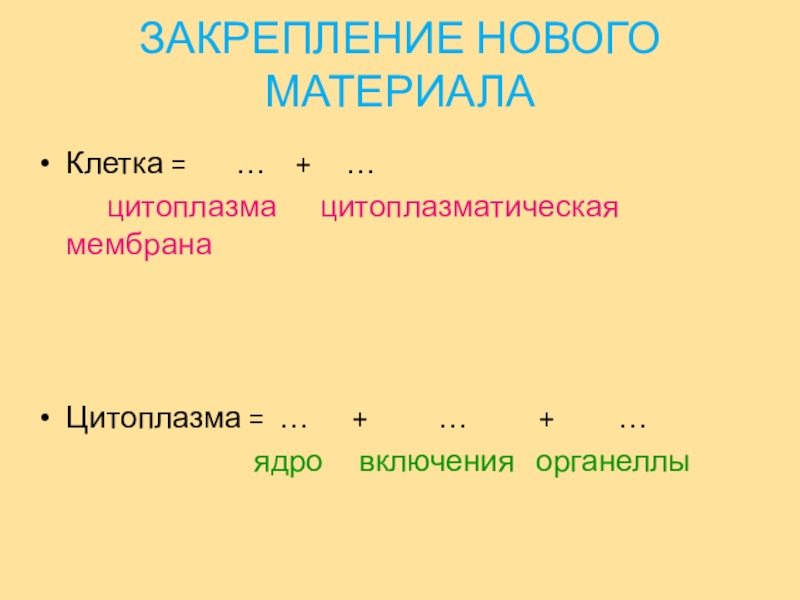 ЗАКРЕПЛЕНИЕ НОВОГО МАТЕРИАЛАКлетка =    …  +   …