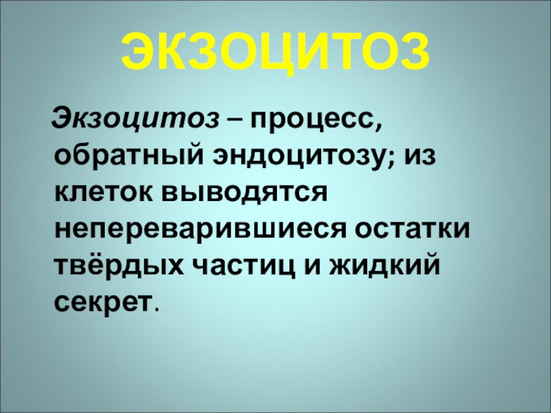 Экзоцитоз – процесс, обратный эндоцитозу; из клеток выводятся непереварившиеся