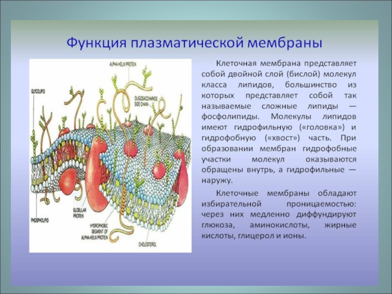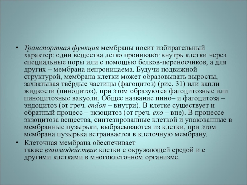 Транспортная функция мембраны носит избирательный характер: одни вещества легко проникают внутрь клетки