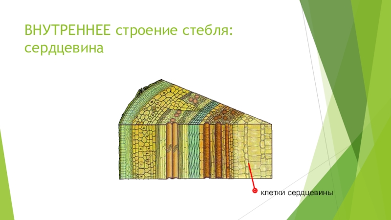 Слайд 10ВНУТРЕННЕЕ строение стебля: сердцевина