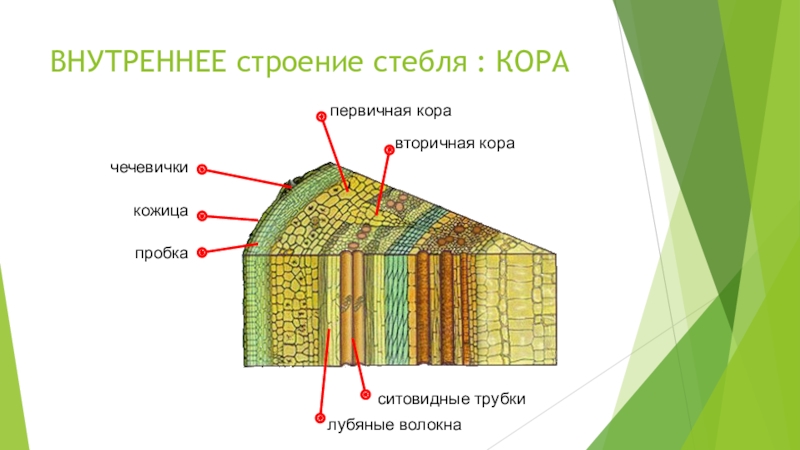 Слайд 8ВНУТРЕННЕЕ строение стебля : КОРА