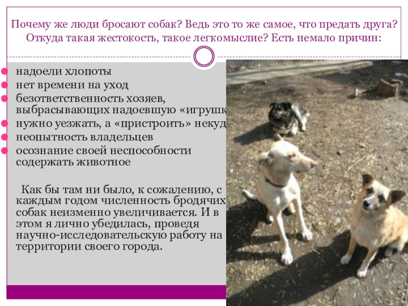 Слайд 9Почему же люди бросают собак? Ведь это то же самое, что