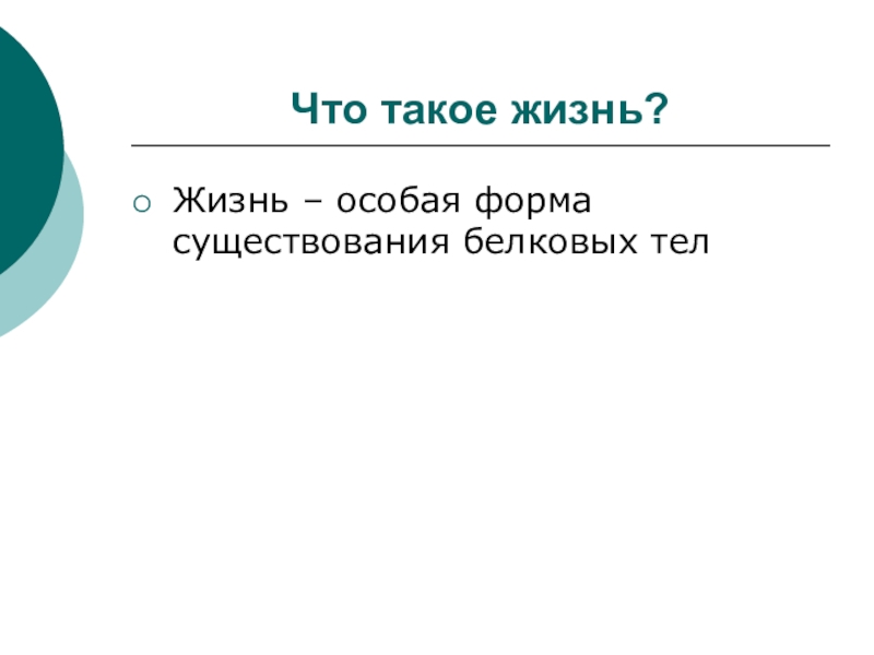 Что такое жизнь?Жизнь – особая форма существования белковых тел