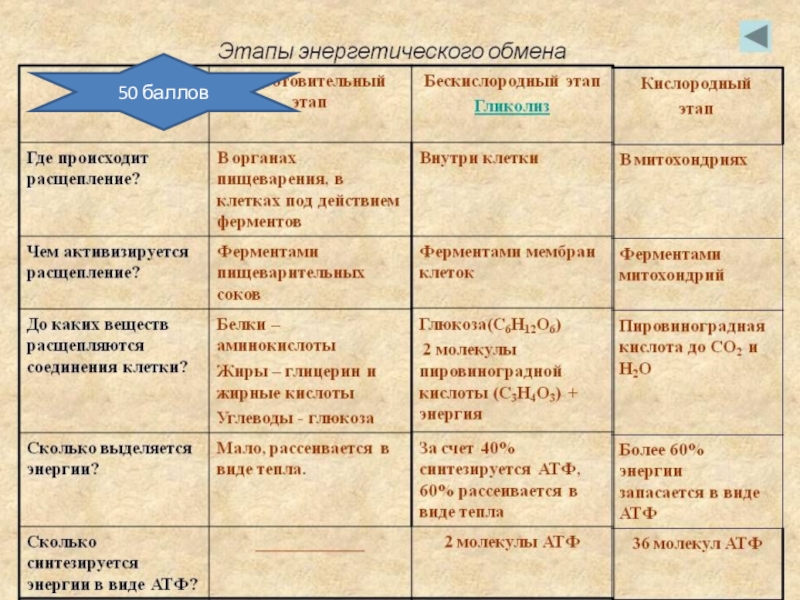 Энергетический обмен в клетках большинства аэробных организмов в присутствии кислорода состоит из трех последовательных этапов. Назовите этапы и сколько энергии освобождается на каждом из этапов.