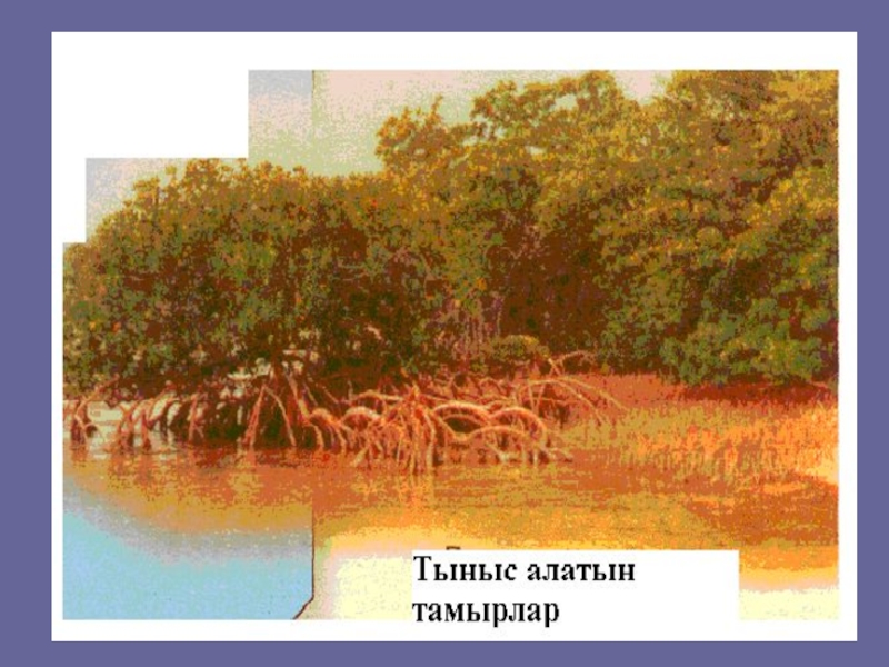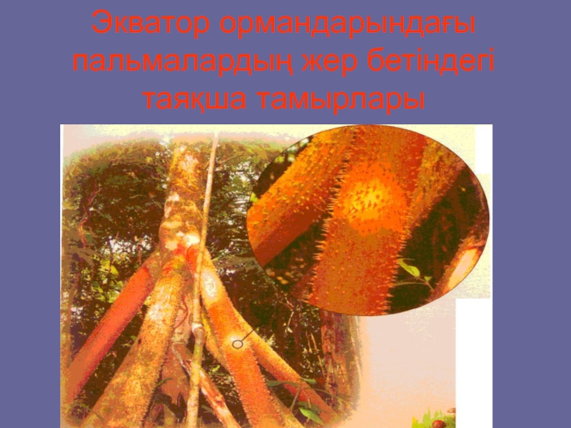 Слайд 7Экватор ормандарындағы пальмалардың жер бетіндегі таяқша тамырлары
